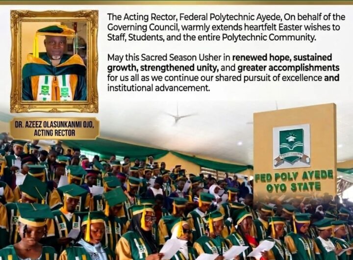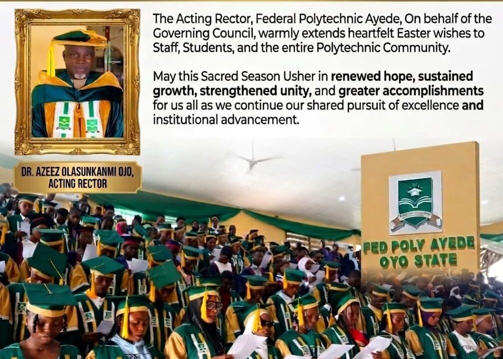The Federal Polytechnic Ayede, Ogbomoso has extended warm Easter greetings to the Christian community within the institution...