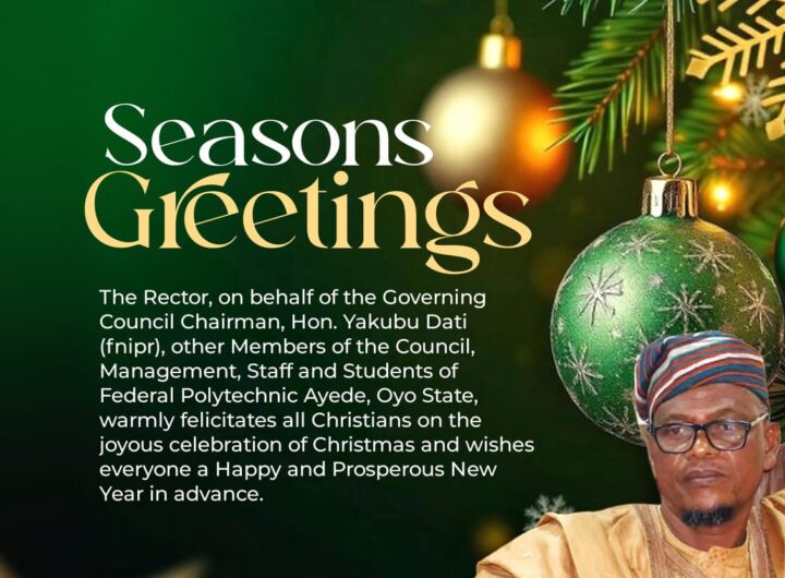 Federal Polytechnic Ayede, Oyo State, has felicitated Christians across the world on the occasion of the 2025...