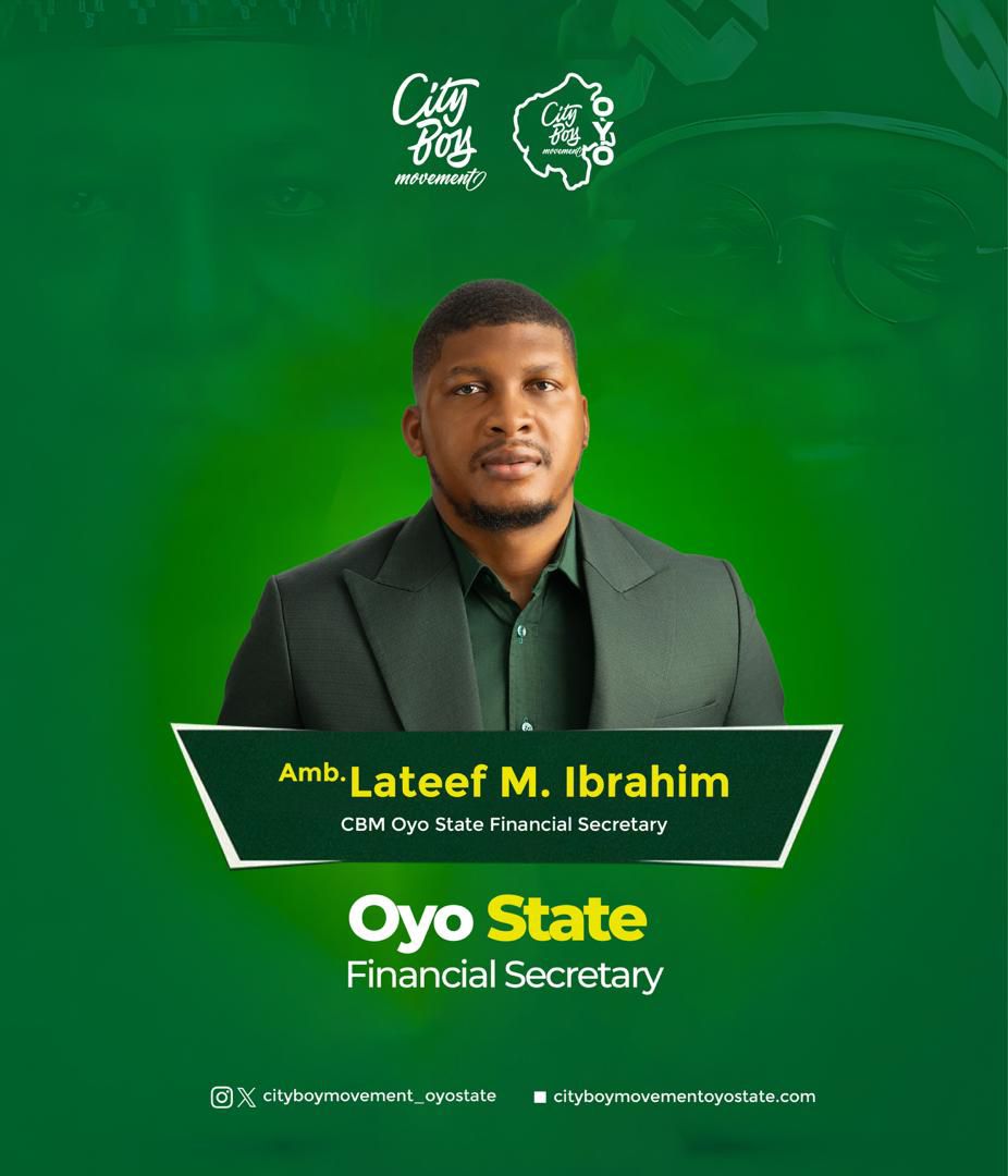 An All Progressives Congress (APC) aspirant for the Ogbomoso South State Constituency in 2027, Amb. Lateef Mobolaji Akanbi Ibrahim, popularly known as LIAM, has emerged as the Oyo State Financial Secretary of the City Boys Movement (CBM).