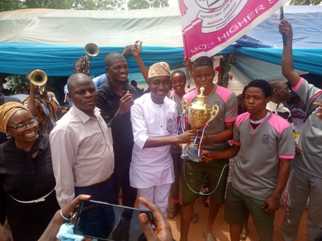 Baptist Secondary Grammar School, Ahoyaya, Ogbomoso, on Monday, February 24, 2026, held its colourful inter-house sports competition, with Blue House, sponsored by the Old Students’ Association, emerging as the overall winner with 193 points.