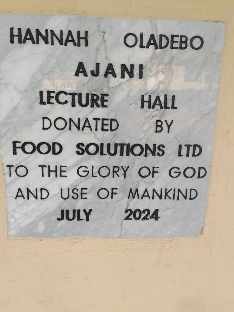 The Hannah Oladebo Ajani Lecture Hall, which includes an office, toilet facilities, and other amenities, had drawn the admiration of dignitaries during its commissioning, including the Aresa-Pupa of Iresa-Pupa, HRM Oba Moses Olayiwola JP, Ajiboye III; the Aale of Okeelerin, HRM Oba Samuel Babatunde Oyebamiji Amao; Baale Masifa, HRH High Chief Gbadebo Adeoba (now late); former AIG, Alhaji Sheu Babalola; and several others from the traditional, academic, business, and religious communities.