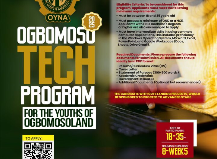 A non-profit organisation in North America, Ogbomoso Youths in North America (OYNA), is proud to announce the...